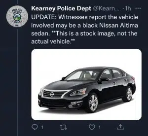 Anyone with information regarding this incident is encouraged to contact the Kearney Police (308) 237–2104, Investigator Jordan Hawkins (308) 293–5009, Investigator Doug McCarty (308) 627–2213, Buffalo County Crime Stoppers (308) 237–3424, the See Something Send Something App or P2C website (p2c.kearneygov.org). Additionally, Kearney Police is requesting area residences and businesses to check video footage for content related to this incident.