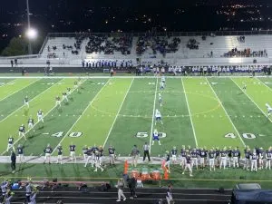 Looking to change the previous outcome, Kearney began the contest with the football as Elkhorn South deferred to the second half. The Bearcats started their possession at their own 22 yard line, slowly showing the style of play they would generate on the brisk October evening. Short runs by Parker Wise and quick passes from quarterback Riley Miller opened up a conversion throw to receiver Kaden Miller. Kaden would corral the catch, convert for a first down, but would crumble to the turf after the play holding his knee. With the Bearcats in shock, watching their leading receiver and one of Class A’s most lethal deep threats hit the turf, Miller was aided off the field.
