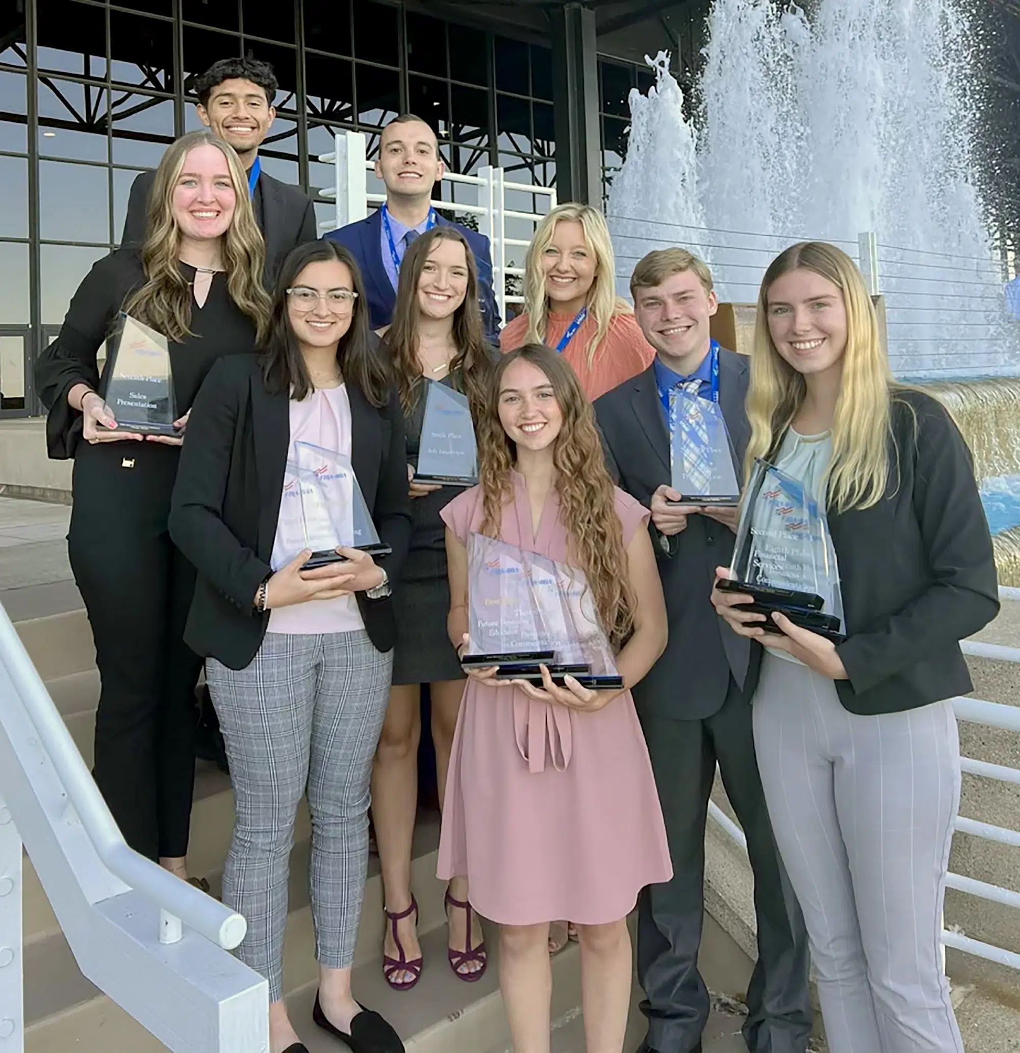 Nine UNK students attended the national conference, and seven placed inside the top 10 in at least one event. With 14 total awards, the UNK chapter earned more national placings than any other Nebraska school.