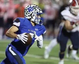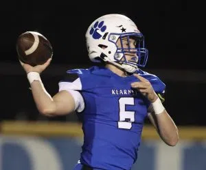 Kearney’s best offensive series of the night began at their own 20 yard line, trotting down 9 plays and 80 yards for a score. Mixing the run and pass, Kearney heavily relied on short runs and quarterback Treyven Beckman’s legs. The Bearcats finished the series with a 13 yard touchdown pass from Beckman to Lee as Kearney trailed 8-7 with 1:44 left in the first quarter.