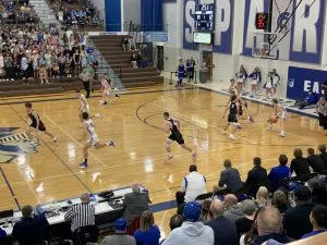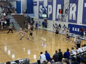 The Bearcats and Spartans put on a track meet in the following eight minutes. Buckets dropped for nine different players on the floor, as East’s Connor Hamilton came alive knocking down two three pointers in the quarter. Hamilton’s triples added East in keeping pace with Kearney as the Bearcats rushed to a six point lead with 7:22 remaining in the quarter, but the Spartans pounded the gas pedal after exploding for a 13-5 run in the next three minutes of game time.