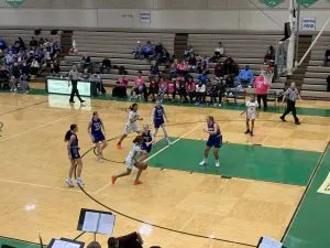 Kearney continued their lead after a tied second quarter as both teams added nine points each – Benson with Lelani Carter adding a three pointer and a foul shot while Klabunde added her own three points. Rusher knocked in another three pointer, and Harley Straka, Addy Helmbrecht, and Haidyn Skeen all contributed scores with Kearney leading 26-17 at halftime.