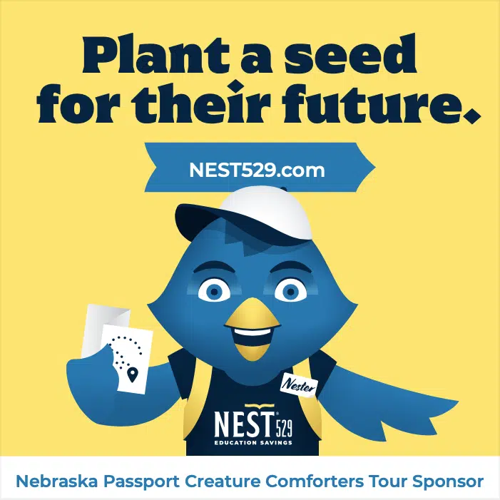 “We are thrilled to partner with Nebraska Tourism, supporting this year’s Creature Comforters stops,” said Nebraska State Treasurer John Murante. “Summer vacation is a special time for families. We hope to inspire kids to consider their future while encouraging families to start saving funds now to support continuing education needs down the road.”