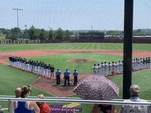 BELLEVUE – Brad Archer’s tenure as the head of the Runza Senior legion program came to an end on Sunday afternoon at Bellevue West’s Allred Field, falling 7-4 in the American Division elimination game to the Pat Hagge Millard South seniors. Click here to listen to the broadcast replay.