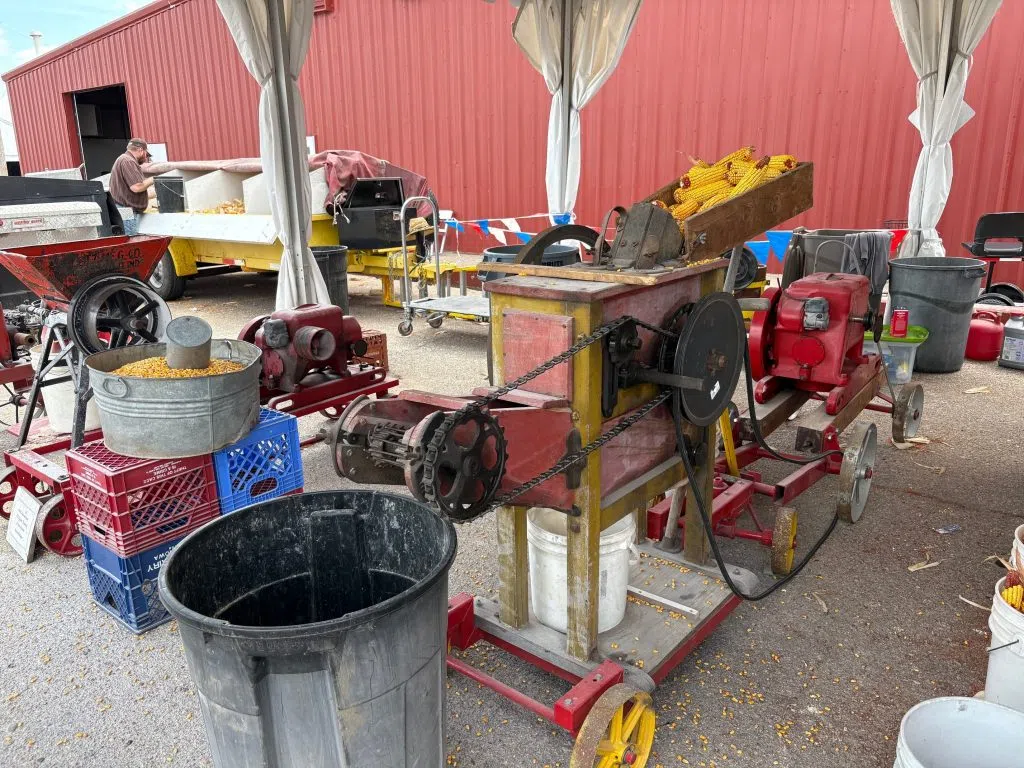 A working antique corn sheller strips corn off the cob at the Antique Small Farm Equipment exhibit at the Nebraska State Fair, (Carol Bryant, Central Nebraska Today)