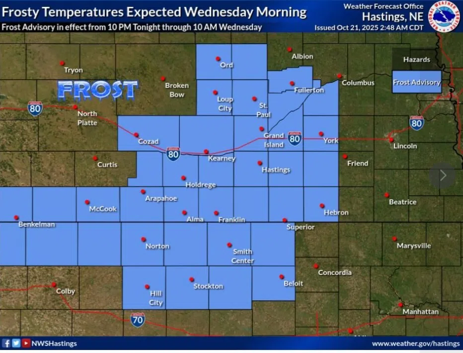 Frost Advisory issued for the morning of Wednesday, Oct. 22, (Brian Neben, Central Nebraska Today)
