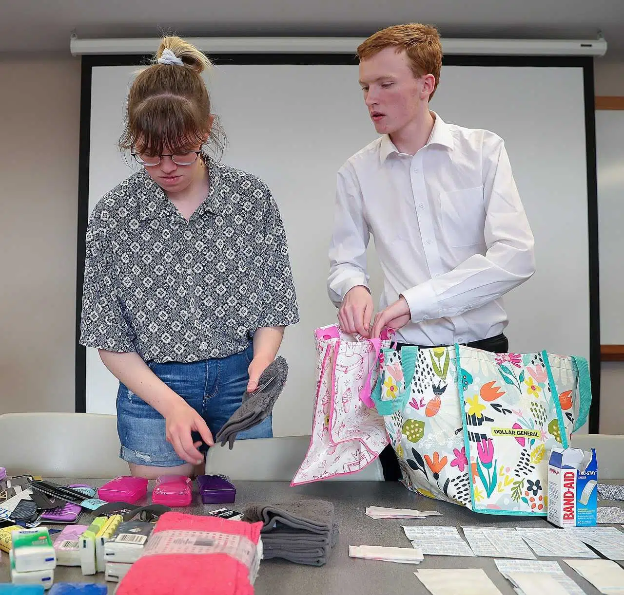 UNK Students and Faculty members set up hygiene kits for Ukrainian refugees, Thursday. The political science majors lead the project that will benefit more than 150 refugees fleeing the conflict in Uk...