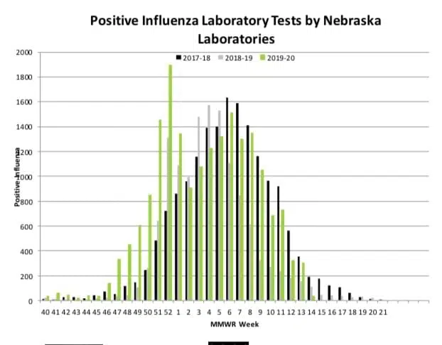 LINCOLN, Neb. (KGFW) - Nebraska recorded a noticeable drop in positive influenza cases in week 14, according to weekly tracking numbers reported by the Nebraska Department of Health and Human Services...