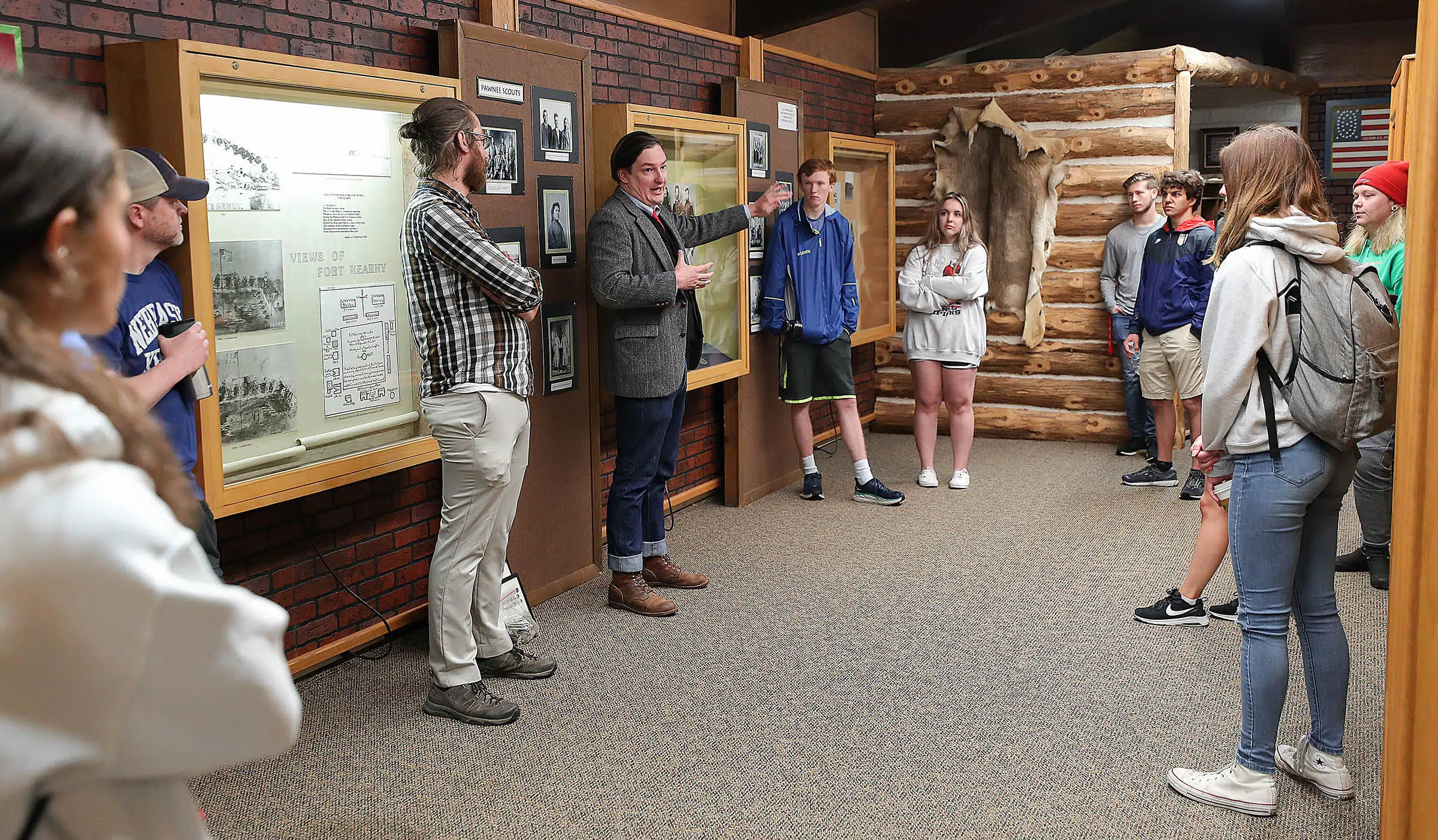 Tyler Ellyson - UNK Communications Feb 21, 2023 UNK history faculty get their students involved in public history projects at locations such as Fort Kearny State Historical Park. (Photo by Erika Pritchard, UNK Communications)